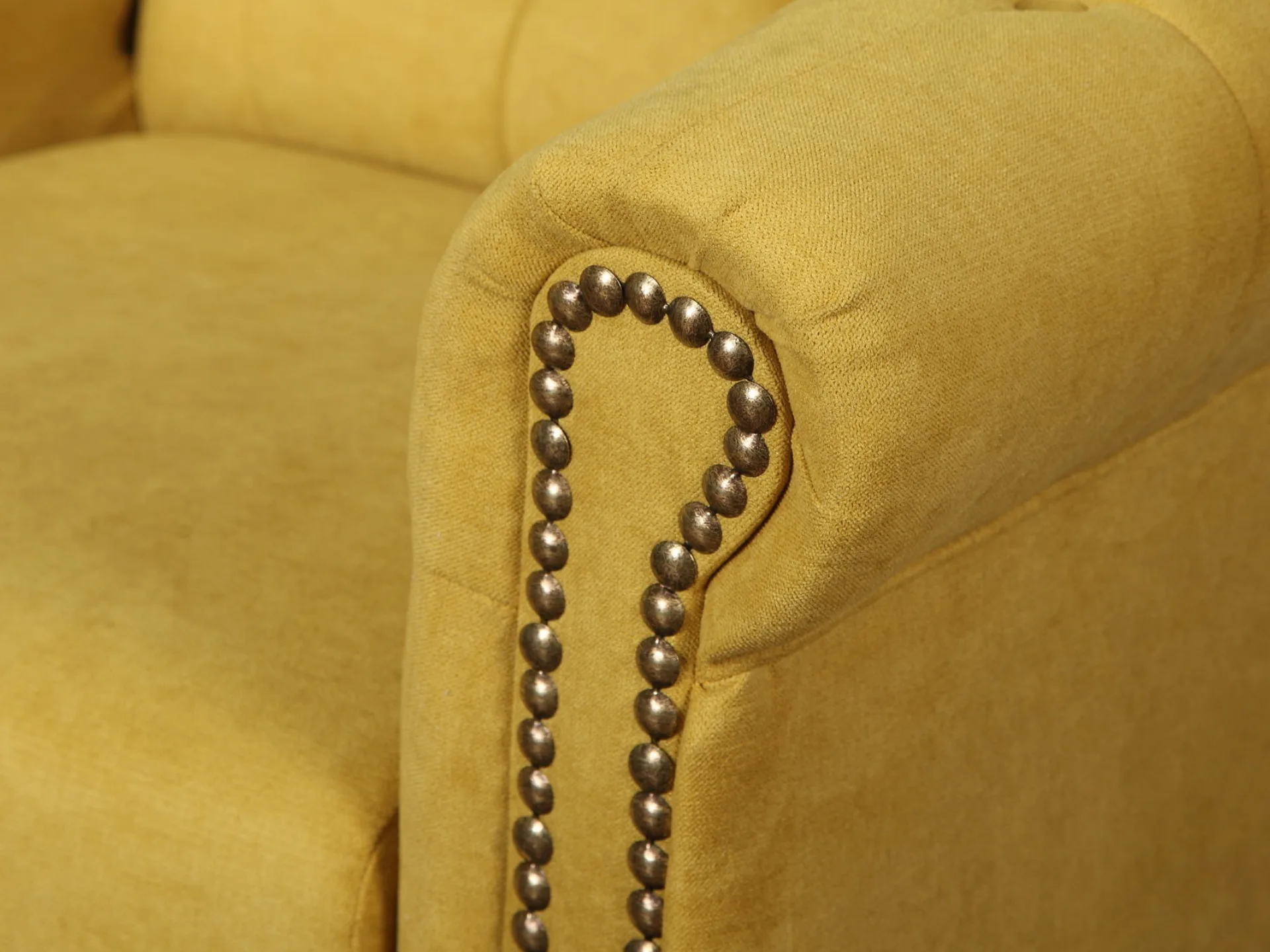 Fotel Glamour to propozycja dla osób, które cenią wyrazisty design i komfort. Ozdobne pikowanie, delikatnie zaokrąglone podłokietniki oraz dekoracyjne detale nadają mu niepowtarzalnego charakteru. Dzięki solidnej konstrukcji i wysokiej jakości materiałom fotel będzie doskonałym dodatkiem do salonu, gabinetu lub eleganckiej przestrzeni hotelowej.