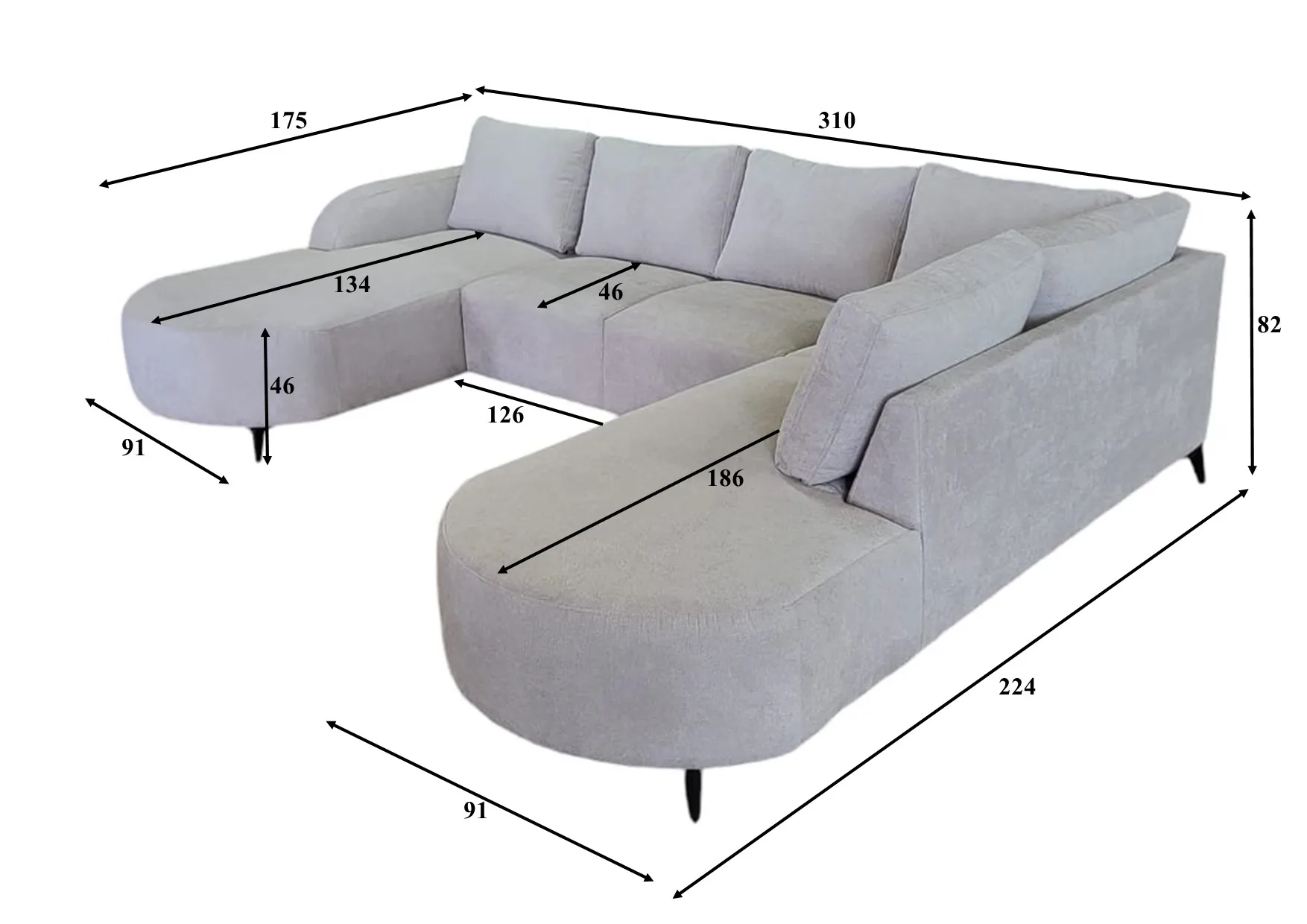 Odkryj narożnik U Dima – idealne połączenie nowoczesnego designu z komfortem użytkowania. Ten przestronny mebel w kształcie litery U doskonale wpasuje się w każde wnętrze, oferując miejsce do relaksu dla całej rodziny.